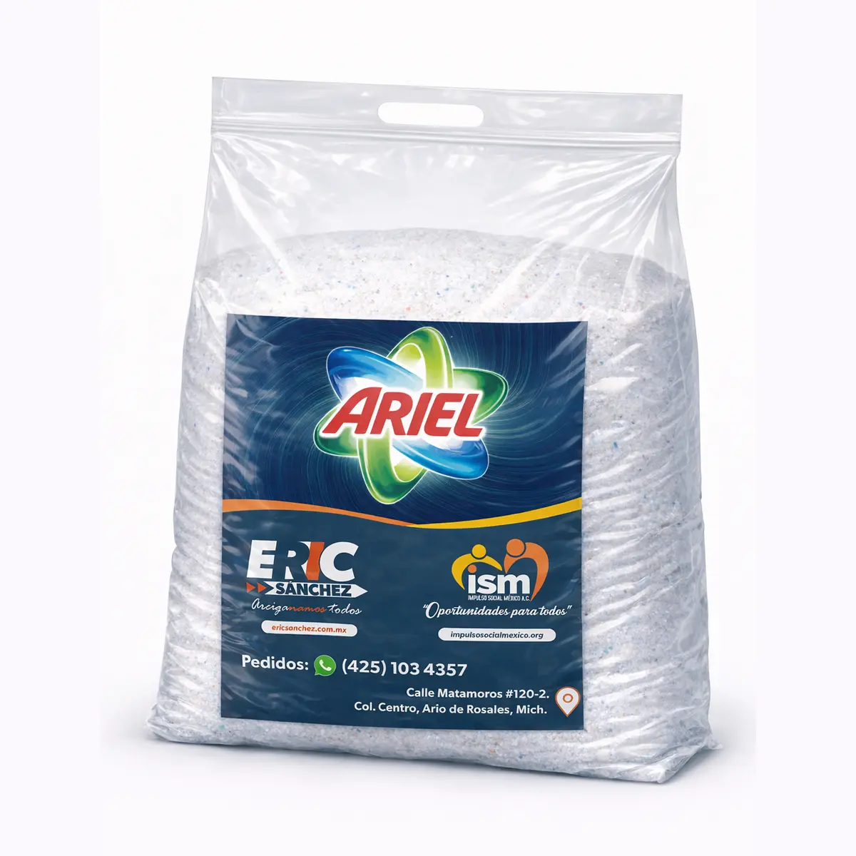 Jabón en polvo ARIEL de 10 kg para lavado de ropa. Alto poder limpiador, gran rendimiento y ahorro en presentación a granel.